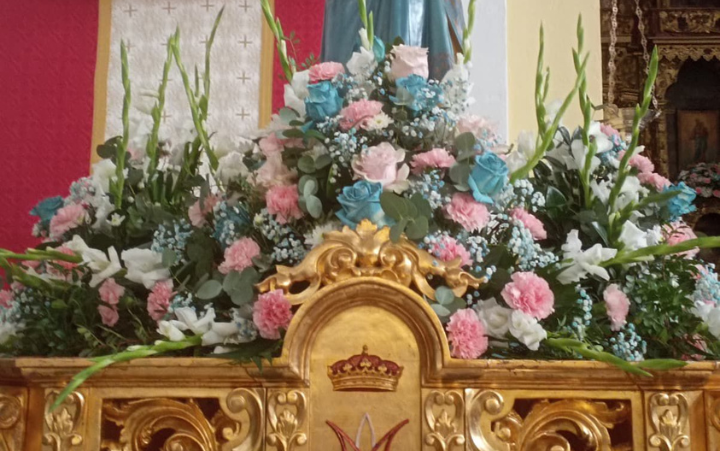En 2024 la Hermandad Nuestra Señora Virgen del Valle compró una ofrenda floral para la Virgen. Claveles, lirios, rosas y más flores dan un colorido espectacular… ¡A los pies de la Virgen!