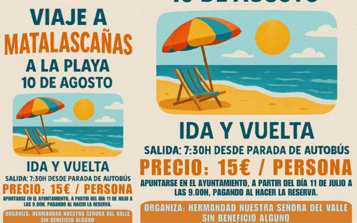 La Hermandad organiza viajes, de momento solo uno. Puede ir quien quiera, por solo 15 euros.  Se hace sin ánimos de lucro y las plazas están limitadas al número de plazas del autobús.